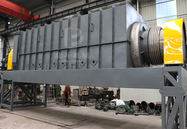 養殖規模較大養殖場每天產生的畜禽糞便量很大,糞污處置困難,糞便的能源化利用率很低。針對這一情況,鞏義市北斗機械自主研究開發的新型雞糞炭化機,通過炭化、熱解技術對畜禽糞便進行處理。由于畜禽糞便中含有較多水分,適合采用分級炭化系統,包括:畜禽糞便烘干機、炭化機。