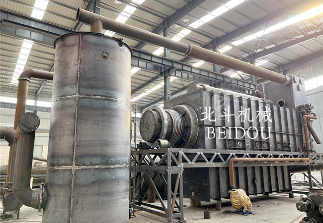 ?炭化主機為內外圓筒嵌套結構,分為預熱段、炭化段和冷卻段。運行時,原材料先進到內筒開展預熱和預炭化,隨后伴隨著炭化主機的旋轉進到外筒,原材料直接在外筒中干餾炭化,炭化完成后由冷卻出料機送出。炭化主機選用變頻電機,滾筒轉速可根據原材料的粒度、水分等因素隨機調節,炭化溫度和時間可以控制。
